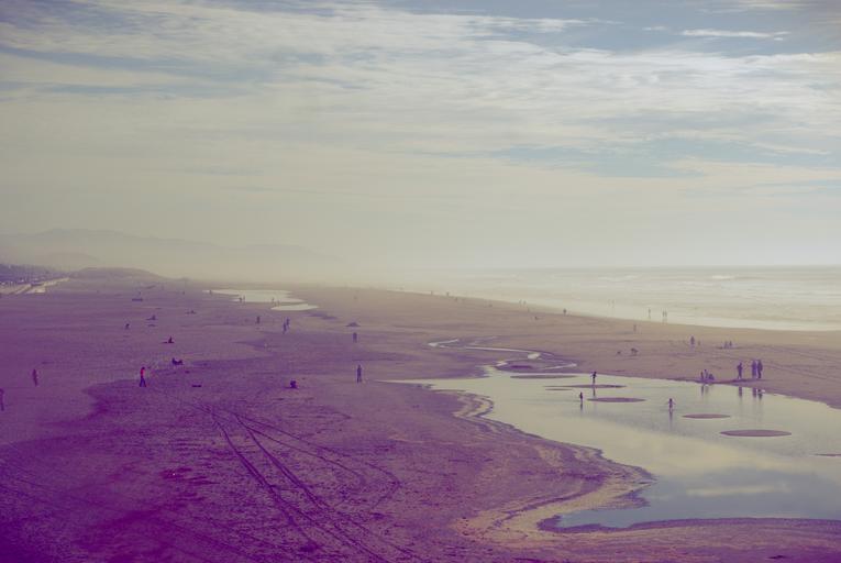 Keywords: beach sandy beach ocean pacific california people swimming bathing water activity vacation holidays sky clouds tracks sand shore tide