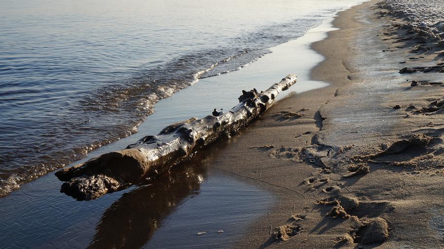 Keywords: beach sea the baltic sea the waves sand log landscape nature sandy beach northern poland poland wet sand
