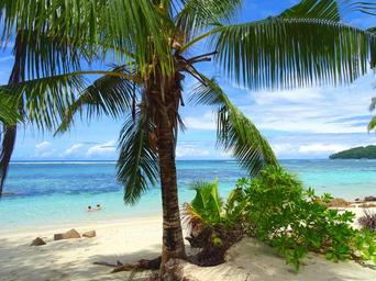Keywords: beach sea sand seaside nature landscape ocean maritime landscape side palm blue shore seychelles holiday sky water vegetation beauty