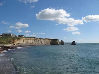 Keywords: beach sea sand view cliff sky blue clouds coast ocean coastline seascape waves