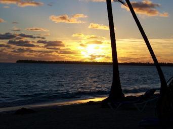 Keywords: beach sunrise palm tree sand island caribbean ocean coast dawn