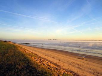 Keywords: beach sunrise sand water ocean morgenstimmung moment romantic rest recovery enjoy