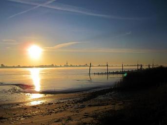 Keywords: beach sunrise sand water ocean morgenstimmung moment romantic rest recovery enjoy
