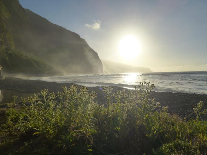 Keywords: beach sunset sea sun back light atlantic cloud formation mood