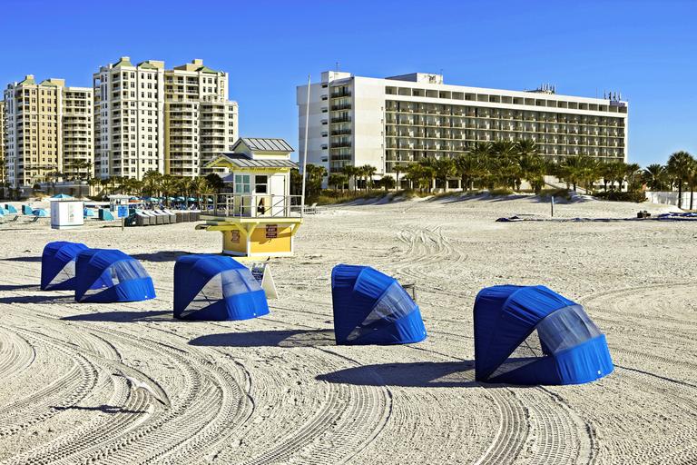 Keywords: beach sunshade guard booth sea sand blue holiday