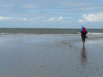Keywords: beach walk beach sea water wind wide infinity loneliness wanderer human person frisch windy