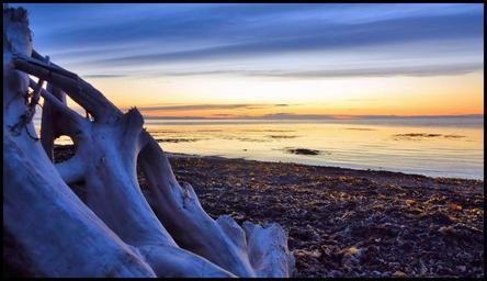 Keywords: beach water ocean sand sunset driftwood wood