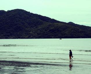 Keywords: beach water salt water mar nature bay ocean sand cove agua orla stones sky mountain sol person
