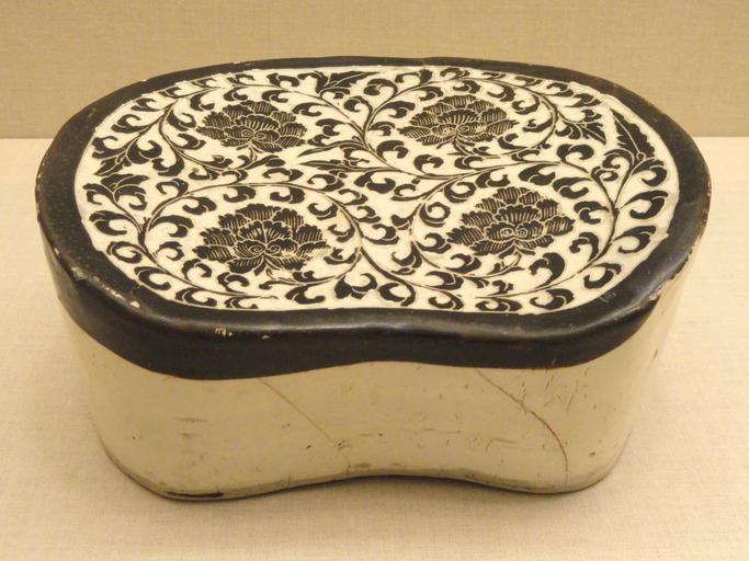 Keywords: Bean-Shaped Pillow, early 12th century, Northern Song Dynasty, China, cizhou-type ware, stoneware with carved peony scroll - Art Institute of Chicago - DSC00263.JPG Exhibit in the Art Institute of Chicago Chicago Illinois USA This artwork is in the public domain because the artist died more than 70 years ago Photography was permitted in the museum without restriction Daderot 2012-10-10 16 38 44 Daderot cc0 cc0 Ceramic pillows in the Art Institute of Chicago |