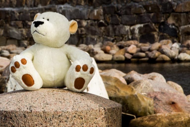 Keywords: bear bears pier water stones view white brown teddy holiday plush background