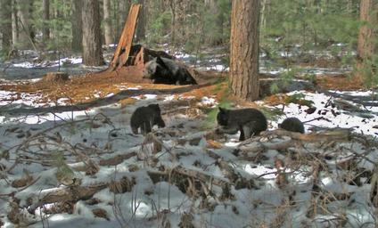 | Keywords: michigan huron-manistee huronmanistee national forests manistee/cadillac manisteecadillac ranger district wildlife black bear bears cubs outdoor Black bear cubs who first left their den site in early April. Please note - these photos have been edited. Shadows have been reduced to better see the cubs. Black bear cubs who first left their den site in early April. Please note - these photos have been edited. Shadows have been reduced to better see the cubs. | ||||