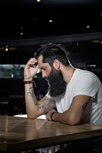 Keywords: beards life man bearded man tattoos skin adult male fashion attractive people stylish trendy model guy elegance bearded posing expression caucasian handsome white serious lifestyle