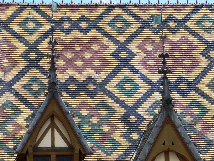Keywords: beaune france burgundy middle ages hospice hotel de dieu roof brick pattern colorful building architecture historically