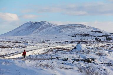 Keywords: beautiful amazing natural view winter cold freezing white a frozen crater crater frozen kerið volcanic crater iceland reykjavik scandinavia europe