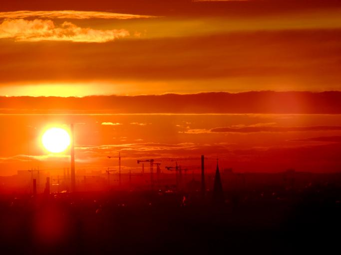 Keywords: beautiful city evening clouds germany back light sky nature evening sun sunset red abendstimmung sun sunbeam crane site skyline berlin bokeh