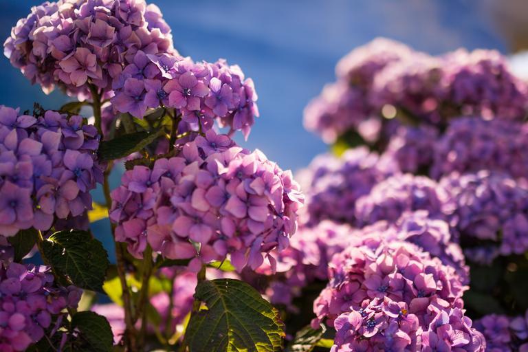 Keywords: beautiful hydrangeas purple flower light nature blossom plant summer green petal flora garden leaf botanical color colorful season outdoor environment botany gardening