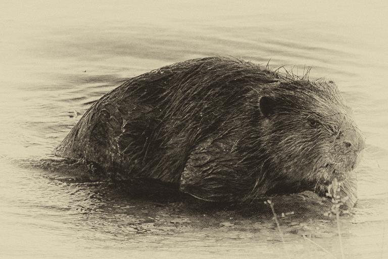 Keywords: beaver eat water black and white retro look wet plate yellow