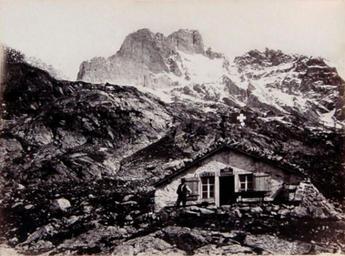 Keywords: Beck-Gleckstein.jpg de Glecksteinhütte und Wetterhorn http //www alpinesmuseum ch//pictures/photos/109_06_00007 jpg Jules Beck 1825-1904 1880 PD-old Jules Beck Black and white photographs of the Alps Alpine huts in the canton of Bern Alpine huts of Bernese Alps Historical images of Wetterhorn
