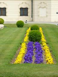 Keywords: bed flower bed colorful color spring bloom ornamental plant garden park floral design blossom bloom nature blossomed floral flora flower rush flowers green book boxwood bush periwinkle buxus pansy lawn mowed