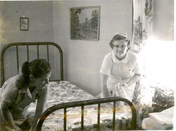 | Keywords: florence crane florencecrane john hartzler johnhartzler bed making bedmaking mennonite board of missions maple lawn homes home for the aged eureka illinois voluntary service mennonite voluntary service elderly nursing homes mennoniteboardofmissionsmaplelawnhomeshomefortheagedeurekaillinoisvoluntaryservicemennonitevoluntaryserviceelderlynursinghomes Caption: August, 1961. Maple Lawn Homes. Nursing supervisor Mrs. John Hartzler teaches Florence Crane the art of bed making. Florence is participating in the program for handicap girls being conducted in the Maple Lawn Homes. Citation: Mennonite Board of Missions. Photographs. Illinois, Eureka, 1961-63. IV-10-7.2 Box 3 Folder 70. Mennonite Church USA Archives - Goshen. Goshen, Indiana. Caption: August, 1961. Maple Lawn Homes. Nursing supervisor Mrs. John Hartzler teaches Florence Crane the art of bed making. Florence is participating in the program for handicap girls being conducted in the Maple Lawn Homes. Citation: Mennonite Board of Missions. Photographs. Illinois, Eureka, 1961-63. IV-10-7.2 Box 3 Folder 70. Mennonite Church USA Archives - Goshen. Goshen, Indiana. |