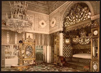 | Keywords: Bedchamber of the Late Bey of Tunis, Kasr-el-Said, Tunisia WDL2503.png Artwork ru Спальня покойного бея Туниса Кас -эль-Саид Тунис fr Chambre à coucher de l'ancien Bey de Tunis Kasr-el-Saïd Tunisie en Bedchamber of the Late Bey of Tunis Kasr-el-Said Tunisia zh 突尼斯 长晚年的卧室,Kasr-el-Said,突尼斯 pt Quarto do Último Bey de Túnis Kasr-el-Said Tunísia ar حجرة النوم لبك تونس الراحل، قصر السعيد، تونس ru Данный цветной снимок сделанный п име но в 1899 году является частью се ии Изоб ажения а хитекту ных соо ужений и жителей Туниса из каталога Дет ойт Фотог афик Кампани а нем изоб ажена спальня бея Туниса во дво це Касса -Саид в го оде Тунис В издании Бедеке а С едиземномо ье сп авочник для путешественников 1911 г этот дво ец описывается как замок бея вход в кото ый для ту истов зап ещен ухаммед III ас-Садик 1813-1882 гг п авил Тунисом начиная с сентяб я 1859 года до своей сме ти в октяб е 1882 года После него ст аной п авил Али уддат ибн аль-Хусейн 1817-1902 гг - с 1882 года и до своей сме ти в июне 1902 года Дет ойт Фотог афик Кампани была основана в конце 90-х годов XIX века в качестве издательской компании выпускающей фотоп одукцию бизнесменом и издателем из Дет ойта Уильямом А Ливингстоном младшим совместно с фотог афом и фотоиздателем Эдвином Г Хаше ом Они п иоб ели эксклюзивные п ава на использование п оцесса фотох оми ования изоб етенного в Швейца ии Фотох оми ование использовалось для п ев ащения че но-белых фотог афий в цветные и последующей печати фотог афий методом фотолитог афии Благода я этому инновационному п оцессу стало возможно массовое п оизводство цветных отк ыток снимков и альбомов для п одажи на аме иканском ынке В 1905 году компания была п еоб азована в Дет ойт Паблишинг Кампани <br>Спальни; Инте ье ы fr Cette gravure photochrome datant d'environ 1899 fait partie du catalogue Regards sur l'architecture et la population de Tunisie de la Detroit Photographic Company Elle représente la chambre du bey de Tunis au palais de Kassar-Said à Tunis L'ouvrage de Baedeker <em> La Méditerranée manuel pour voyageurs </em> 1911 décrivait le palais comme un château du bey où l'admission de touristes n'était pas autorisée Muhammad III as-Sadiq 1813 82 gouverna la Tunisie de septembre 1859 jusqu'à sa mort en octobre 1882 Lui succéda Ali Muddat ibn al-Husayn 1817 1902 qui régna de 1882 jusqu'à sa mort en juin 1902 La Société photographique de Detroit était une maison d'édition photographique créée à la fin des années 1890 par l'homme d'affaires et éditeur de Detroit William A Livingstone Jr en association avec le photographe et photo-éditeur Edwin H Husher Ils obtinrent les droits exclusifs d'utilisation du processus suisse Photochrome pour la conversion de photographies noir et blanc en images couleur ainsi que leur impression par photolithographie Cette technique innovante a permis la production en série de cartes postales tirages et albums en couleur vendus sur le marché américain L'entreprise est devenue la Detroit Publishing Company en 1905 <br>Chambres à coucher; Intérieurs en This photochrome print from circa 1899 is part of Views of Architecture and People in Tunisia from the catalog of the Detroit Photographic Company It shows the chamber of the bey of Tunis in the Kassar-Said Palace in Tunis Baedeker s <em>The Mediterranean Handbook for Travelers</em> 1911 described the palace as a château of the bey to which admittance by tourists was not allowed Muhammad III as-Sadiq 1813 82 ruled Tunisia from September 1859 until his death in October 1882 He was succeeded by Ali Muddat ibn al-Husayn 1817 1902 who ruled from 1882 until his death in June 1902 The Detroit Photographic Company was launched as a photographic publishing firm in the late 1890s by Detroit businessman and publisher William A Livingstone Jr and photographer and photo-publisher Edwin H Husher They obtained the exclusive rights to use the Swiss Photochrom process for converting black-and-white photographs into color images and printing them by photolithography This innovative process was applied to the mass production of color postcards prints and albums for sale to the American market The firm became the Detroit Publishing Company in 1905 <br>Bedrooms; Interiors zh 这幅约 1899年制 的彩印画是底特律摄影公司书目中 突尼斯建筑与人物风景 的 个部分 其内容为突尼斯Kassar-Said宫中的突尼斯 长卧室 根据 德克尔 中海:旅行 手册 (1911年版)中的描述,该宫殿是不允许旅游 入内的 长城堡 穆罕默德三世萨迪克(1813-82年)从1859年9 直到1882年10 去世, 直统治 突尼斯 他的继任 为Ali Muddat ibn al-Husayn(1817-1902年),后 从1882年直到1902年6 去世, 直都 进行统治 底特律摄影公司是 19世纪90年代 成立的 家摄影出版公司,创办人是底特律商人兼出版商小威廉·A·