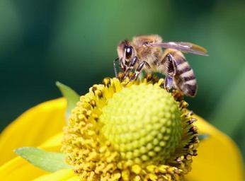 Keywords: bee animal insect blossom bloom close bee on flower honey bee pollination