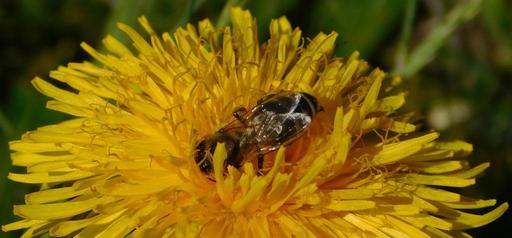 Keywords: bee dandelion flower blossom bloom close honey bee yellow pollen nectar