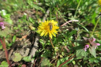Keywords: bee dandelion meadow yellow spring flower meadow close nature insect flower