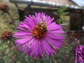 Keywords: bee dusting nature spring bloom garden spring pink bloom pollination flowers
