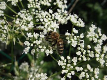 Keywords: bee flower nature pollen garden insecta petals white flower