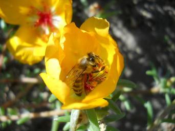 Keywords: bee flower yellow nature insecta garden spring pollen food pollination supplies flowers green grass