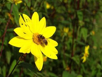 Keywords: bee insect blossom bloom yellow pollen nature plant close summer