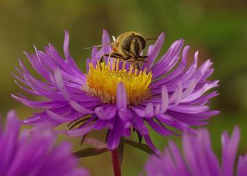Keywords: bee insect blossom bloom aster violet herbstaster close macro