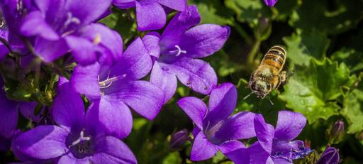 Keywords: bee insect close macro flower nectar honey plant purple blossom bloom nature
