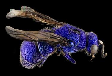 Keywords: bee macro insect blue nature pollen wings profile pollinate antennae honey mounted wildlife portrait ceratochrysis declinus u s geological survey