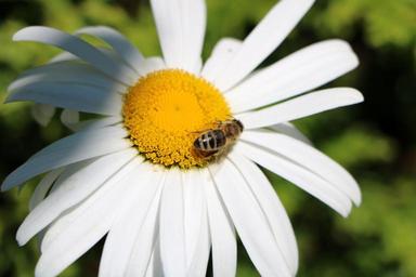 Keywords: bee marguerite flower blossom bloom plant nature yellow white