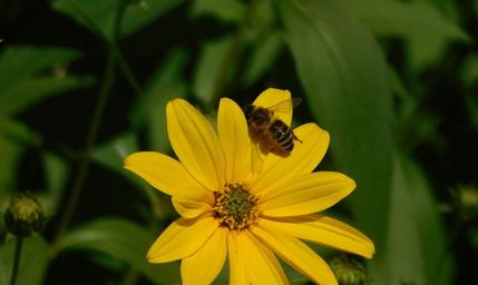 Keywords: bee on a flower bee on the flower yellow bee on flower blossom bloom close insect hard working nature