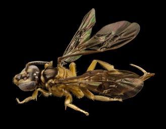 | Keywords: bee bees biml usgs apoidea droege usgsbiml stackshot zerene stacker zerenestacker taxonomy:genus=osiris columbia south america southamerica sting stinger atlatl black background animal Osiris, Atlatl Godbee, Collected in Colombia The ancient Egyptian God Osiris was associated with both the afterlife and a greenish skin, and at least indirectly with Honey Bees. While early entomologists liked to demonstrate the depth of their knowledge naming genera according to classical Roman, Greek or, in this case Egyptian deities, the name in this case might be less inaccurate. This is because some Osiris species have a rather afterlifely pallid coloration sometimes verging on yellow-green. While there are 32 different species of Osiris, distributed from Mexico south to Argentina, almost nothing is known about the biologies of these nest parasites. There is one record of a young Godbee emerging from the nest of pollen carrying bees of the genus Paratetrapedia. Morphologically, the genus is notable for the length of its sting. It is not just the sting shaft that is elongate. The ventral part of the apical abdominal segment is developed into a long, almost tubular structure through which the sting can project. An interesting additional feature is the enormous development of what is, in almost all other bees, a tiny strut at the base of the sting shaft. In Osiris this forms a very elongate structure that looks like an atlatl or spear-thrower. Perhaps these remarkable embellishments serve to drive the sting home if the cuckoo should invade a nest while the rightful occupant is inside, or be caught in flagrante delicto by the returning mother. ~~~~~~~~~~{{{{{{0}}}}}}~~~~~~~~~~ All photographs are public domain, feel free to download and use as you wish. Photography Information: Canon Mark II 5D, Zerene Stacker, Stackshot Sled, 65mm Canon MP-E 1-5X macro lens, Twin Macro Flash in Styrofoam Cooler, F5.0, ISO 100, Shutter Speed 200 Further in Summer than the Birds Pathetic from the Grass A minor Nation celebrates Its unobtrusive Mass. No Ordinance be seen So gradual the Grace A pensive Custom it becomes Enlarging Loneliness. Antiquest felt at Noon When August burning low Arise this spectral Canticle Repose to typify Remit as yet no Grace No Furrow on the Glow Yet a Druidic Difference Enhances Nature now -- Emily Dickinson Want some Useful Links to the Techniques We Use? Well now here you go Citizen: Basic USGSBIML set up: www.youtube.com/watch?v=S-_yvIsucOY USGSBIML Photoshopping Technique: Note that we now have added using the burn tool at 50% opacity set to shadows to clean up the halos that bleed into the black background from "hot" color sections of the picture. www.youtube.com/watch?v=Bdmx_8zqvN4 PDF of Basic USGSBIML Photography Set Up: ftp://ftpext.usgs.gov/pub/er/md/laurel/Droege/How%20to%20Take%20MacroPhotographs%20of%20Insects%20BIML%20Lab2.pdf Google Hangout Demonstration of Techniques: plus.google.com/events/c5569losvskrv2nu606ltof8odo or www.youtube.com/watch?v=4c15neFttoU Excellent Technical Form on Stacking: www.photomacrography.net/ Contact information: Sam Droege sdroege@usgs.gov 301 497 5840 Osiris, Atlatl Godbee, Collected in Colombia The ancient Egyptian God Osiris was associated with both the afterlife and a greenish skin, and at least indirectly with Honey Bees. While early entomologists liked to demonstrate the depth of their knowledge naming genera according to classical Roman, Greek or, in this case Egyptian deities, the name in this case might be less inaccurate. This is because some Osiris species have a rather afterlifely pallid coloration sometimes verging on yellow-green. While there are 32 different species of Osiris, distributed from Mexico south to Argentina, almost nothing is known about the biologies of these nest parasites. There is one record of a young Godbee emerging from the nest of pollen carrying bees of the genus Paratetrapedia. Morphologically, the genus is notable for the length of its sting. It is not just the sting shaft that is elongate. The ventral part of the apical abdominal segment is developed into a long, almost tubular structure through which the sting can project. An interesting additional feature is the enormous development of what is, in almost all other bees, a tiny strut at the base of the sting shaft. In Osiris this forms a very elongate structure that looks like an atlatl or spear-thrower. Perhaps these remarkable embellishments serve to drive the sting home if the cuckoo should invade a nest while the rightful occupant is inside, or be caught in flagrante delicto by the returning mother. ~~~~~~~~~~{{{{{{0}}}}}}~~~~~~~~~~ All photographs are public domain, feel free to download and use as you wish. Photography Information: Canon Mark II 5D, Zerene Stacker, Stackshot Sled, 65mm Canon MP-E 1-5X macro lens, Twin Macro Flash in Styrofoam Cooler, F5.0, ISO 100, Shutter Speed 200 Further in Summer than the Birds Pathetic from the Grass A minor Nation celebrates Its unobtrusive Mass. No Ordinance be seen So gradual the Grace A pensive Custom it becomes Enlarging Loneliness. Antiquest felt at Noon When August burning low Arise this spectral Canticle Repose to typify Remit as yet no Grace No Furrow on the Glow Yet a Druidic Difference Enhances Nature now -- Emily Dickinson Want some Useful Links to the Techniques We Use? Well now here you go Citizen: Basic USGSBIML set up: www.youtube.com/watch?v=S-_yvIsucOY USGSBIML Photoshopping Technique: Note that we now have added using the burn tool at 50% opacity set to shadows to clean up the halos that bleed into the black background from "hot" color sections of the picture. www.youtube.com/watch?v=Bdmx_8zqvN4 PDF of Basic USGSBIML Photography Set Up: ftp://ftpext.usgs.gov/pub/er/md/laurel/Droege/How%20to%20Take%20MacroPhotographs%20of%20Insects%20BIML%20Lab2.pdf Google Hangout Demonstration of Techniques: plus.google.com/events/c5569losvskrv2nu606ltof8odo or www.youtube.com/watch?v=4c15neFttoU Excelle