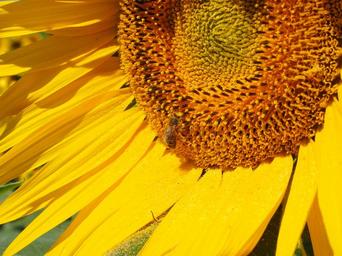 Keywords: bee pollen collect sun flower blossom bloom nectar inflorescence flower basket flower yellow tongue flower tubular flowers helianthus annuus nature plant beautiful sunny colorful bright macro close