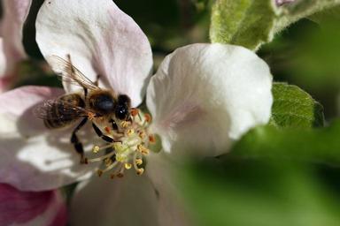 Keywords: bee pollination wings macro closeup insect flourishing garden pollination of flowers jabłonka flowers sunny pollen nectar the bees at work spring the collection of
