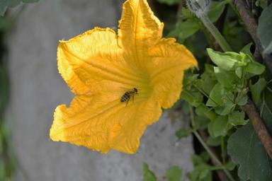 Keywords: bee pumpkin blossom close garden summer insect garden