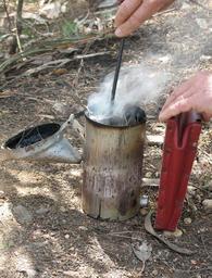 Keywords: Bee Smoker.jpg Fireing a bee Smoker; Author Daniel Feliciano ; Location Torres Novas - Portugal 2006-05-19 own assumed Daniel Feliciano Bee smokers