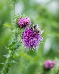 Keywords: bee thistle blossom bloom pollination pollen ring thistle curled thistle purple violet thistle flower nectar insect collect sprinkle