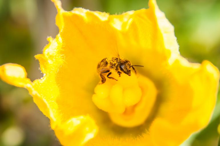 Keywords: bee yellow pollen close pollination nature sunny flowers
