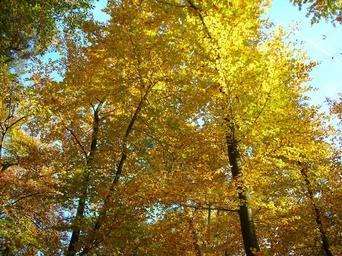 Keywords: beech wood canopy golden october autumn sunny leaves emerge yellow fall color