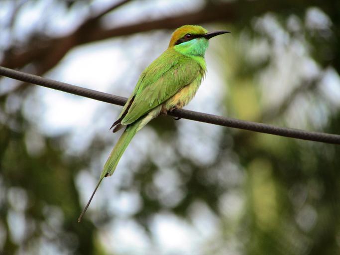 Keywords: beeeater small little green bird perched perching cable aves avian fauna avifauna dharwad india