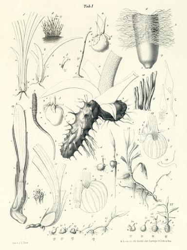 Keywords: Beer Beitraege zur Morphologie Tab01.png is as follows Erlaeuterung der Tafeln 1 Laengenschnitt durch einen jungen Trieb von Gongora bufonia a Blattlose Scheiden b c Wahre Laubblaetter d Knospensaeulchen e Anlage zu Knospen 2 Laengenschnitt durch einen jungen Trieb von Brassia maculata a Blattlose Scheiden b Blatttragende Scheiden c Wahre Laubblaetter d Knospensaeulchen e Anlage zu einer Knospe 3 Wurzelhaare von Luftknollen bildenden Orchideen von Stanhopea tigrina Roehrenfoermige Gebilde 100/1 200/1 300/1 a Stumpfes Ende der Haare b Luftblasen c Spaltoeffnung d Basis dieser Haare womit sie auf den Wurzeln festsitzen 4 Knolle sammt Knospe von Orchis mascula beobachtet Anfangs Maerz natuerliche Groesse a Knospe b Scheidenblaettchen c Mutterknolle d Deren Wurzel e Deren Trieb 5 Knolle sammt Knospe von Orchis variegata beobachtet Anfangs Maerz natuerliche Groesse a Knospe b Scheidenblaettchen c Mutterknolle d Deren Wurzel e Deren Trieb 6 Eine Wurzel von Goodyera repens 100/1 a Kahle Wurzelspitze b Wurzelhaare weiss durchsichtig bandfoermig gebildet 7 Eine Wurzel von Cyclobotra lutea natuerliche Groesse Das Ausmass der Verkuerzung der Wurzel durch Zusammenziehen entspricht der Tiefe der in die Erde gezogenen Zwiebel a Querfaltungen durch Verkuerzungen der Wurzel entstanden b Unterer glatter Theil der Wurzel 8 Monstroese Bildung einer Bluethe von Cattleya Harrissonii a Vollkommen gleichmaessig entwickelte Pollinarien b Rudiment der Saeule 9 Weitere Entwicklung bei Bletia verecunda 100/1 a Keimknoellchen b Die eben sich bildende Luftknolle c Deren erste Wurzel d Haarzellen-Bueschel e Ernaehrungs- und Befestigungs-Organe 10 Wurzelhaare von stammbildenden Orchideen von Aerides odoratum Bandfoermige Gebilde 100/1 12 Laengenschnitt durch einen jungen Trieb von Cattleya crispa a Blattlose Scheiden c Wahre immer fleischige Laubblaetter d Knospensaeulchen e Anlage zu Knospen 13 Laengenschnitt durch einen jungen Trieb von Mormodes unicolor a Blattlose Scheiden b Blatttragende Scheiden c Knospensaeulchen 14 Durchschnitt einer Knolle sammt Knospe von Orchis mascula beobachtet Anfangs Maerz 20/1 a Knospenende b Knospenscheidenblaettchen c Hauptgefaessbuendel d Wurzel an der Mutterknolle e Trieb an der Mutterknolle f Mutterknolle 15 Keimknoellchen von Orchis variegata 100/1 Erstes Auftreten des Blattes und der Wurzel Der Keimling liegt auf der Erde a Wuerzelchen b Anlage zu dem ersten Blaettchen c Haar-Zellen Ernaehrungs-Organe an dem Keimknoellchen d Keimknoellchen 16 Fernere Entwicklung der Blattorgane und der Wurzel 30/1 Durch die Verkuerzung der Wurzel wird der Keimling unter die Erde gezogen Die Haarzellen sind nun gaenzlich vertrocknet und von dem Keimknoellchen abgefallen a Keimknoellchen b Wurzel b Durch willkuerliche Verkuerzung der Wurzeln enstandene Querfaltungen c Unterer Theil der Wurzel welcher rein weiss und an der Spitze fast durchsichtig erscheint 17 Eine Pflanze von Goodyera repens in natuerlicher Groesse a Kahle Wurzelspitze b Wurzelhaare c Aehnliche Haarbueschel an dem Staemmchen und den Aesten 18 Durchschnitt einer Knolle sammt Knospe von Orchis variegata beobachtet Anfangs Maerz 20/1 a Knospenende b Knospenscheidenblaettchen c Hauptgefaessbuendel d Wurzel an der Mutterknolle e Trieb der Mutterknolle f Mutterknolle 19 Verlauf des Hauptgefaessbuendels aus der Mutterknolle und dem Triebe in die Knospe 20 Keimknoellchen von Goodyera repens 100/1 a Samenmantel in Fetzen an dem Keimknoellchen haengend b Waerzchen woraus sich das erste Blaettchen entwickelt 21 Keimknoellchen von Goodyera repens mit entwickeltem Blaettchen 100/1 Das Keimknoellchen traegt noch seine Haarzellen a Blatttragende Scheide b Erstes Blaettchen c Erste Wurzel 22 Keimknoellchen von Goodyera repens mit mehr entwickeltem Stammgebilde 50/1 Die Wurzel treibt die eigenthuemlich langen Wurzelhaare a Blatttragende Scheide d Ringe wo solche Blaetter vertrocknet abfielen 23 Staemmchen von Goodyera repens das Keimknoellchen ist vertrocknet abgefallen 30/1 a Blatttragende Scheiden d Stammgebilde e Wurzelhaare f Wurzel g Stumpfes Ende des Staemmchens wo das Keimknoellchen abfiel 24 Keimknoellchen von Sarcanthus rostratus 100/1 a Samenmantel b Waerzchen welches spaeter zum ersten Blaettchen auswaechst 25 Keimknoellchen von Sarcanthus rostratus 100/1 a Entwicklung des ersten Blaettchens b Haarzellen am Keimknoellchen wahrscheinlich zur Ernaehrung desselben 26 Keimknoellchen von Sarcanthus rostratus im Beginne der Stammbildung 50/1 a Erstes Blaettchen b Erste Entwicklung einer blatttragenden Scheide c Erste Wurzel 27 Keimknoellchen von Sarcanthus rostratus im Vertrocknen begriffen 30/1 Diese stammbildenden Orchideen bilden niemals wahre Laubblaetter sondern stets nur blattlose und blatttragende Scheiden a Erstes Blaettchen b Blatttragenden Scheiden c Wurzel Beer Beitraege zur Morphologie und Biologie der Familie der Orchideen Joseph Georg Beer 1863 PD-old Joseph Georg Beer - Beiträge zur Morphologie und Biologie der Familie der Orchideen Stanhopea tigrina - botanical illustrations ImageNote 1 403 86 331 403 2040 2720 2 Stanhopea tigrina ImageNoteEnd 1 |