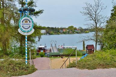 Keywords: beer garden access sign at the lake stairs peetzsee brandenburg
