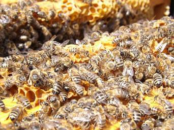 Keywords: bees beehive beekeeping honey busy honeybees colony many insects swarm