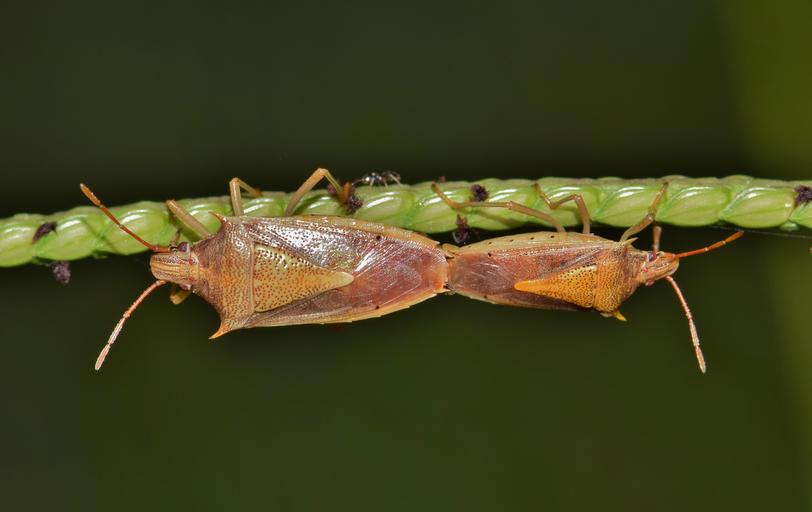 Keywords: beetle bug stink bug rice stink bug insect insectoid creature breed breeding mating back to back nature close up grass entomology arthropod oebalus pugnax